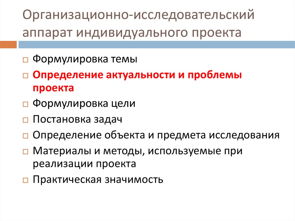 проблема должна быть существующей в настоящее время икоторую можно решить в ходе проведенного исследования;