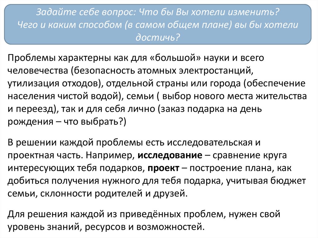 В решении каждой проблемы есть исследовательская и
