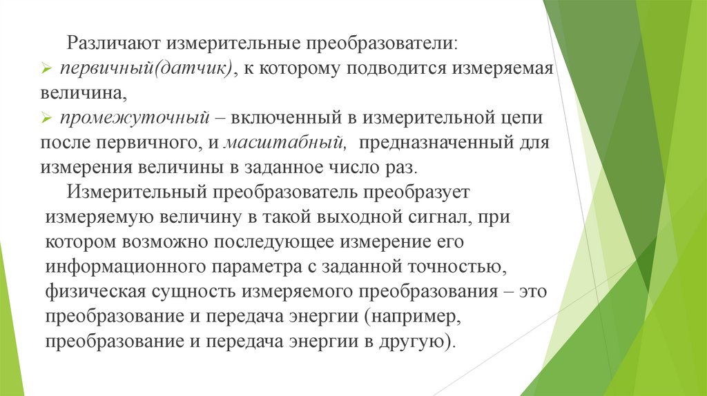 Различают измерительные преобразователи:первичный(датчик), к которому подводится измеряемая