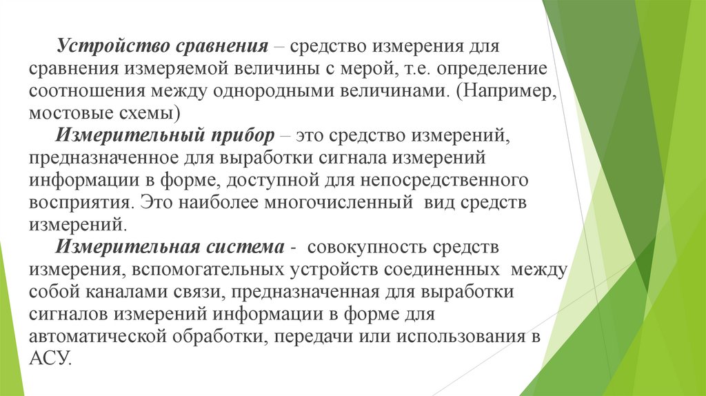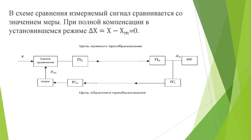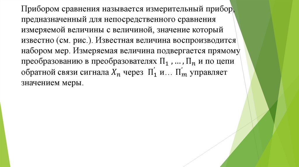 Устройство сравнения – средство измерения длясравнения измеряемой величины с мерой, т.е. определение