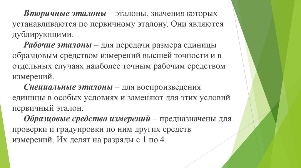 Вторичные эталоны – эталоны, значения которыхустанавливаются по первичному эталону. Они являются