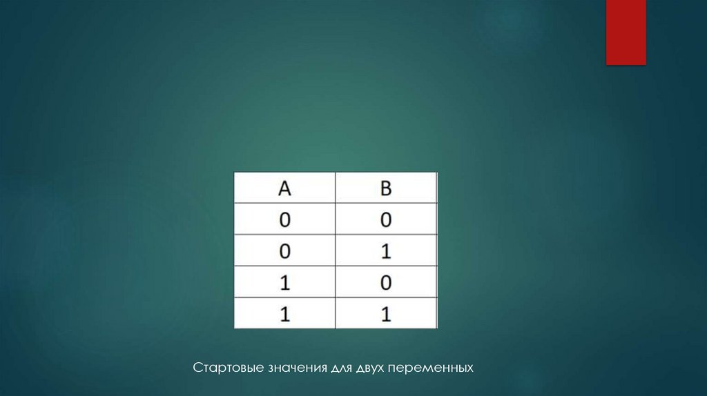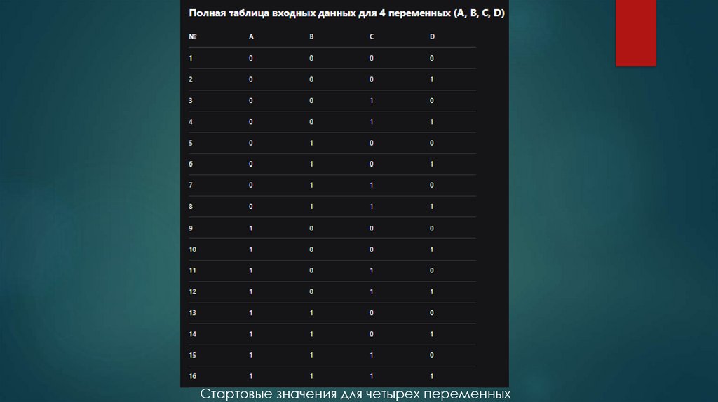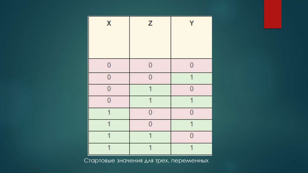 Стартовые значения для четырех переменных15. Решите следующие таблицы истинности