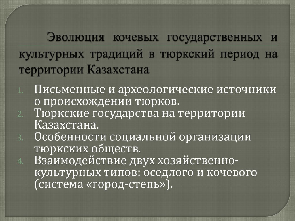 1. Эволюция кочевых государственных и культурных традиций в тюркский период на территории Казахстана