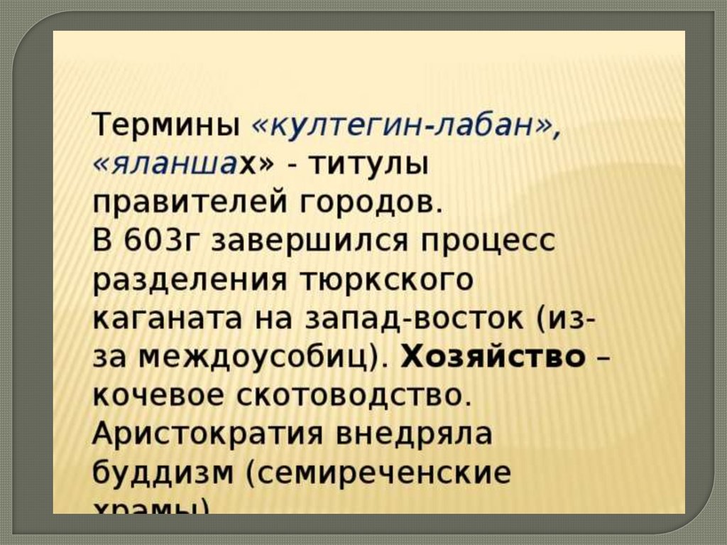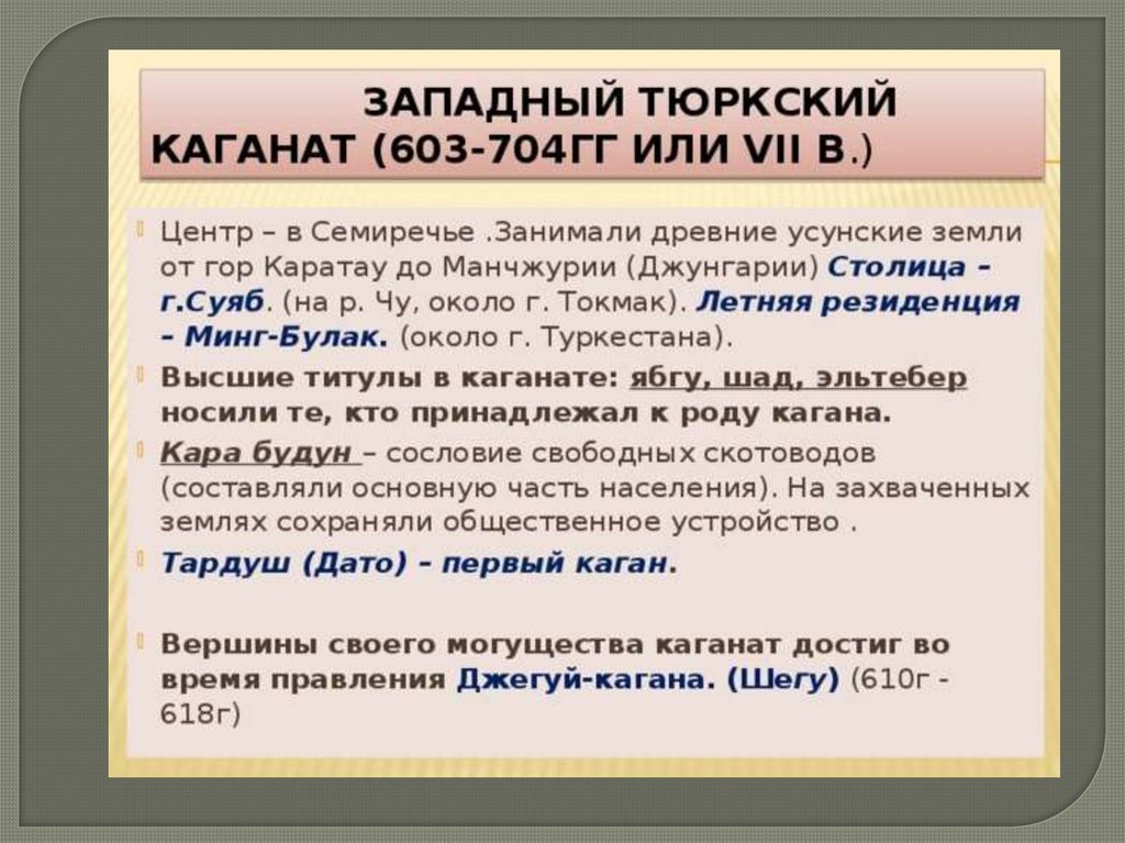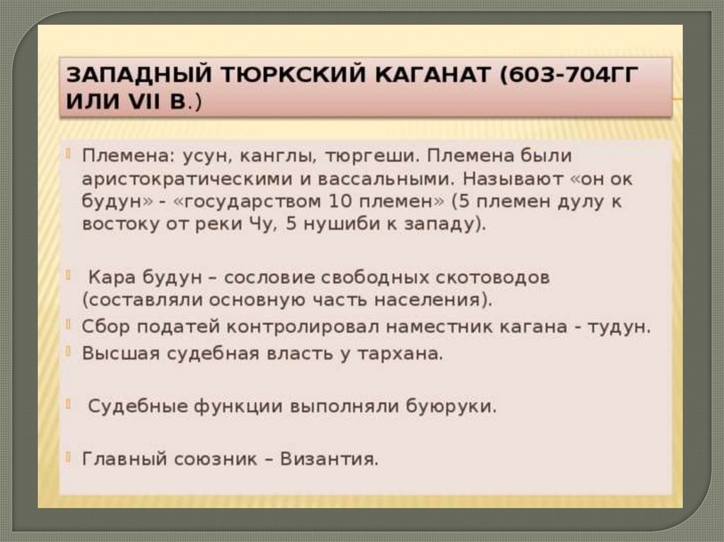 Этнический состав Западно-Тюркского Каганата:• Этническим ядром Западно-тюркского каганата стали «10