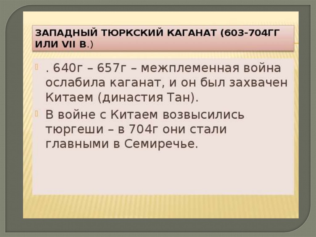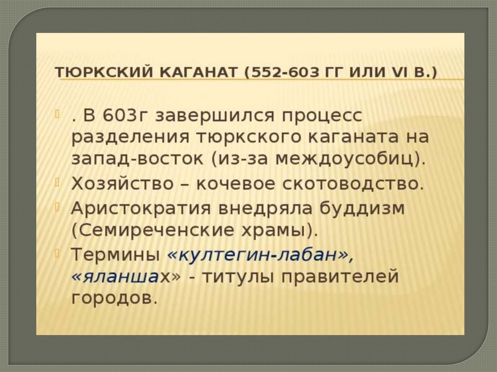 В 603 г. западная часть Тюркского каганата обособляется в самостоятельноегосударство.
