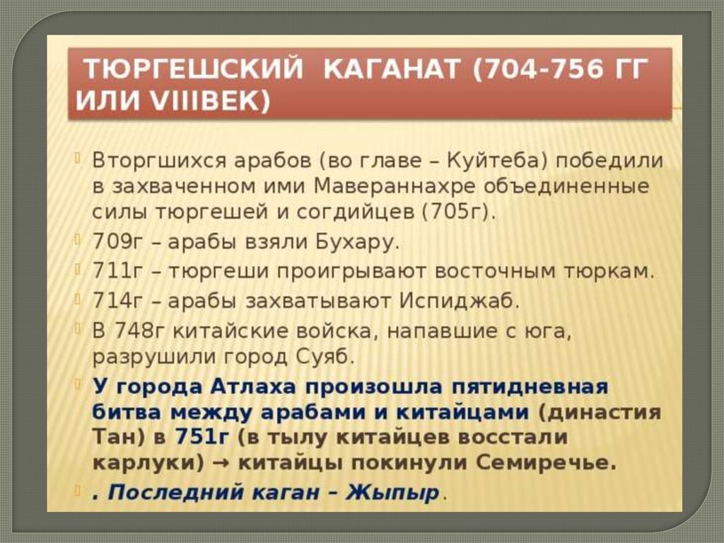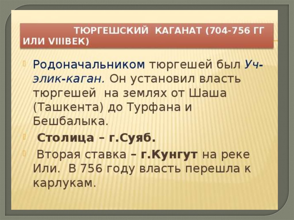 тюргеши — районы Балхаша, Заилийского Алатау;
