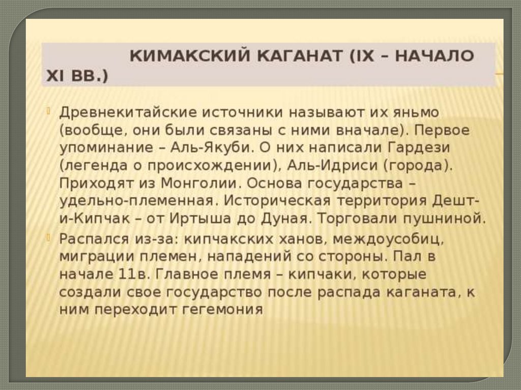 45. КИМАКСКИЙ КАГАНАТ (IX – НАЧАЛО XI ВВ.)