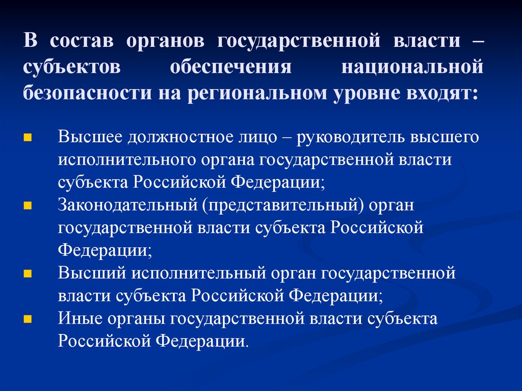 3-й уровень системы – национальная безопасностьсубъектов Российской Федерации.