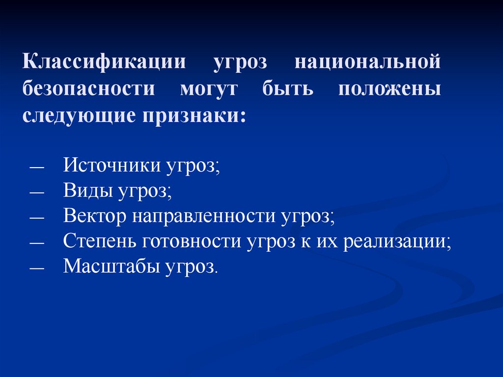 национальной безопасности по их направленности