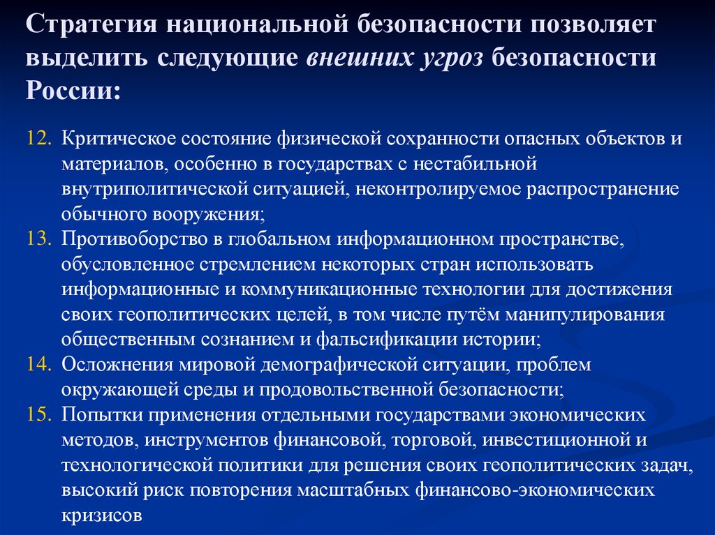 3. Угрозы национальной безопасности: