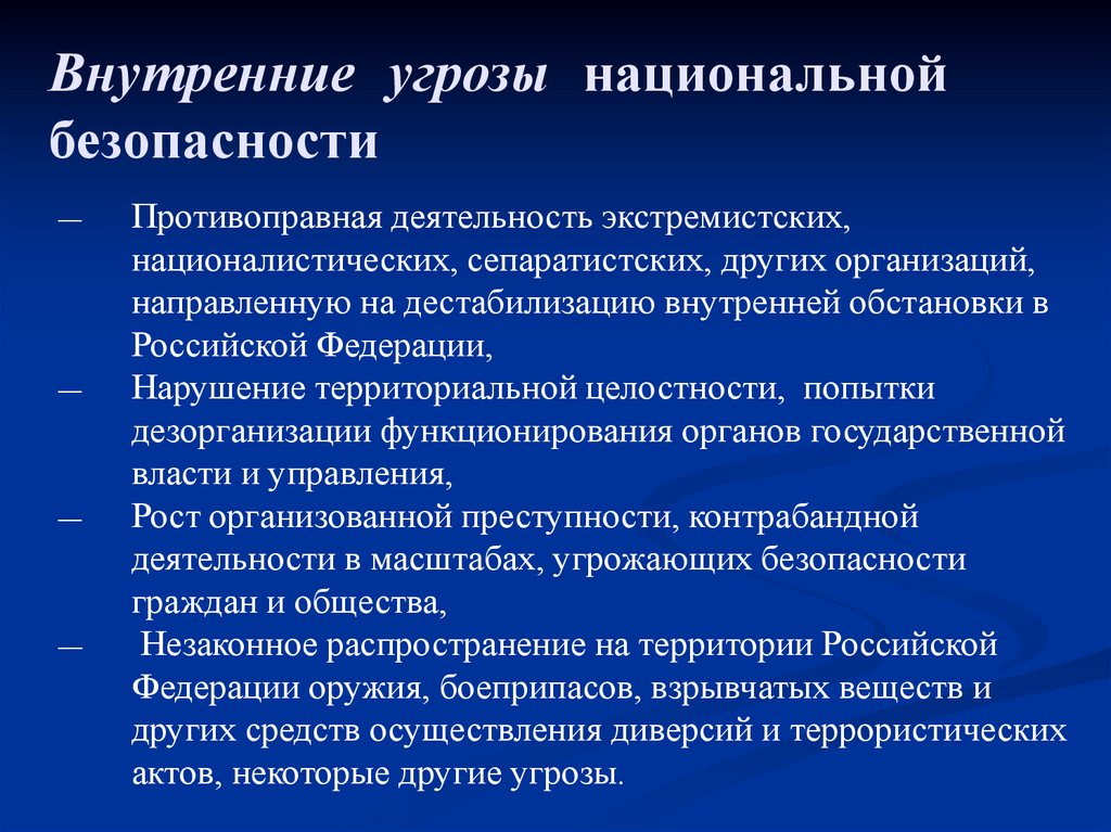 Внутренние угрозы национальнойбезопасности