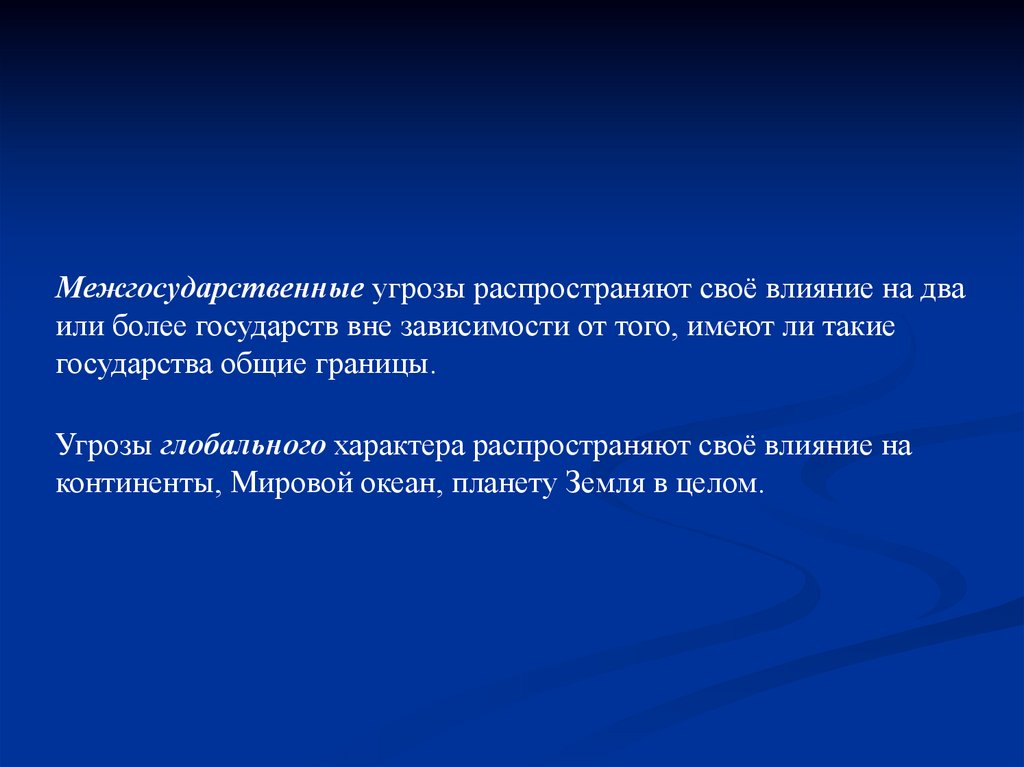 Межгосударственные угрозы распространяют своё влияние на дваили более государств вне зависимости от того, имеют ли такие