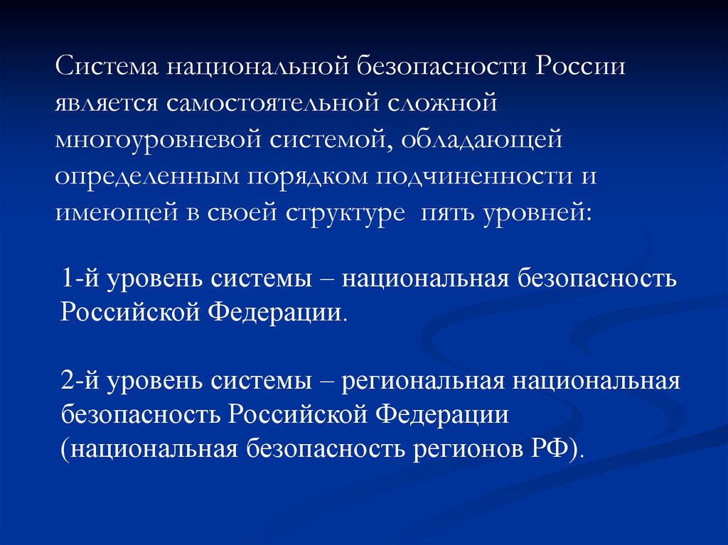1-й уровень системы – национальная безопасность