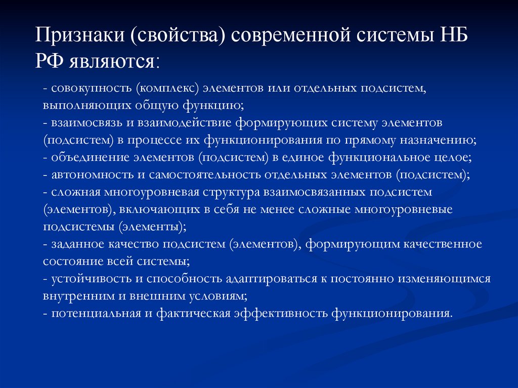 Признаки (свойства) современной системы НБРФ являются: