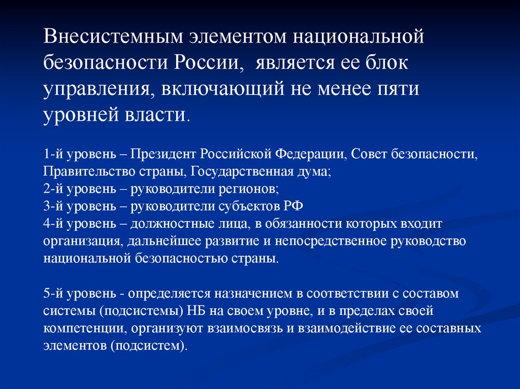 Внесистемным элементом национальнойбезопасности России, является ее блок