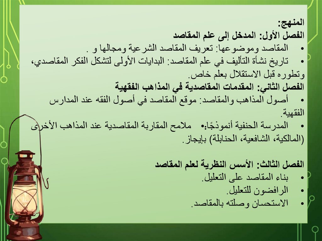 المنهج:الفصل األول :المدخل إلى علم المقاصد