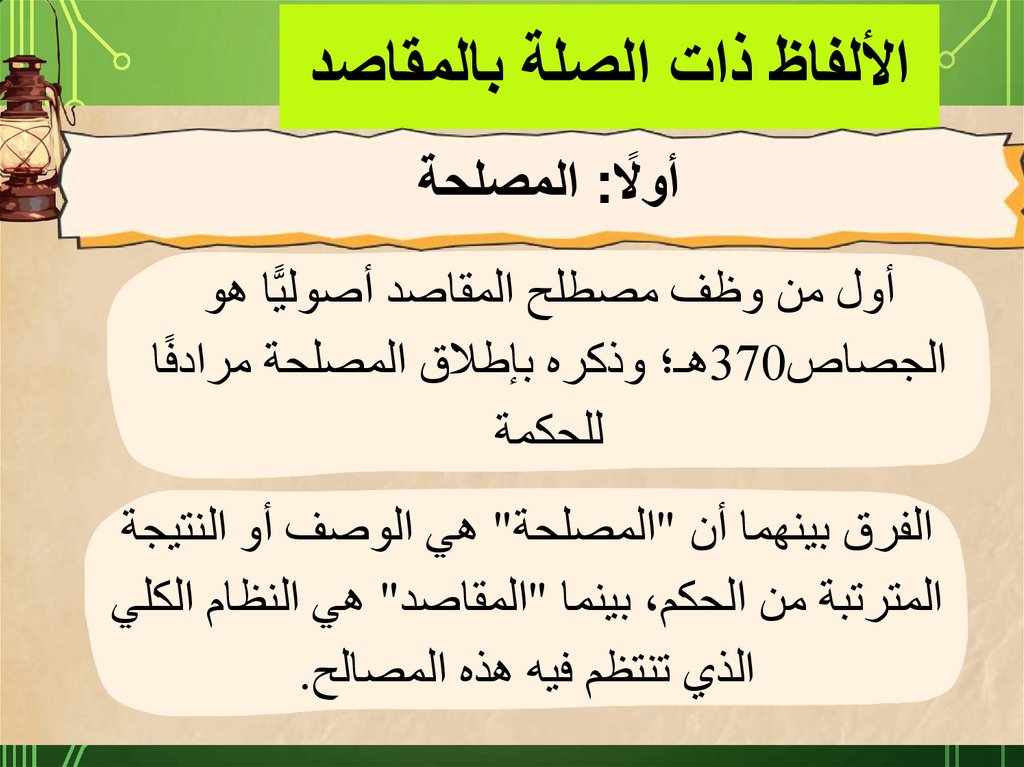 • المقاصد وموضوعها.6. تعريف المقاصد الشرعية