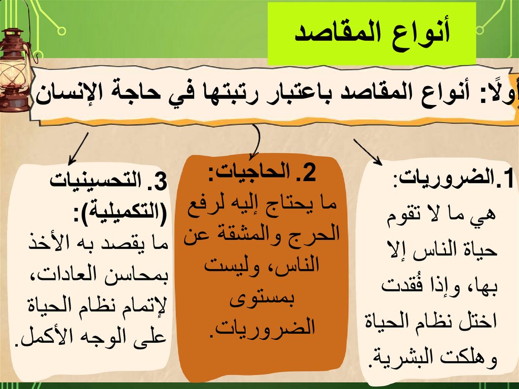 تقسيم المصالح إلى :ضروريات ،حاجيات ،تحسينيات،