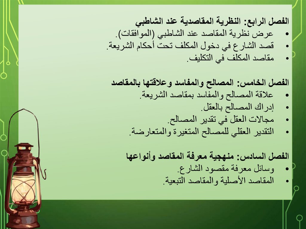الفصل الرابع :النظرية المقاصدية عند الشاطبي• عرض نظرية المقاصد عند الشاطبي (الموافقات).