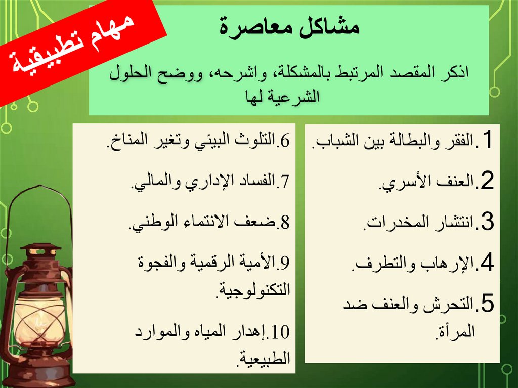 مشاكل معاصرةاذكر المقصد المرتبط بالمشكلة ،واشرحه ،ووضح الحلول