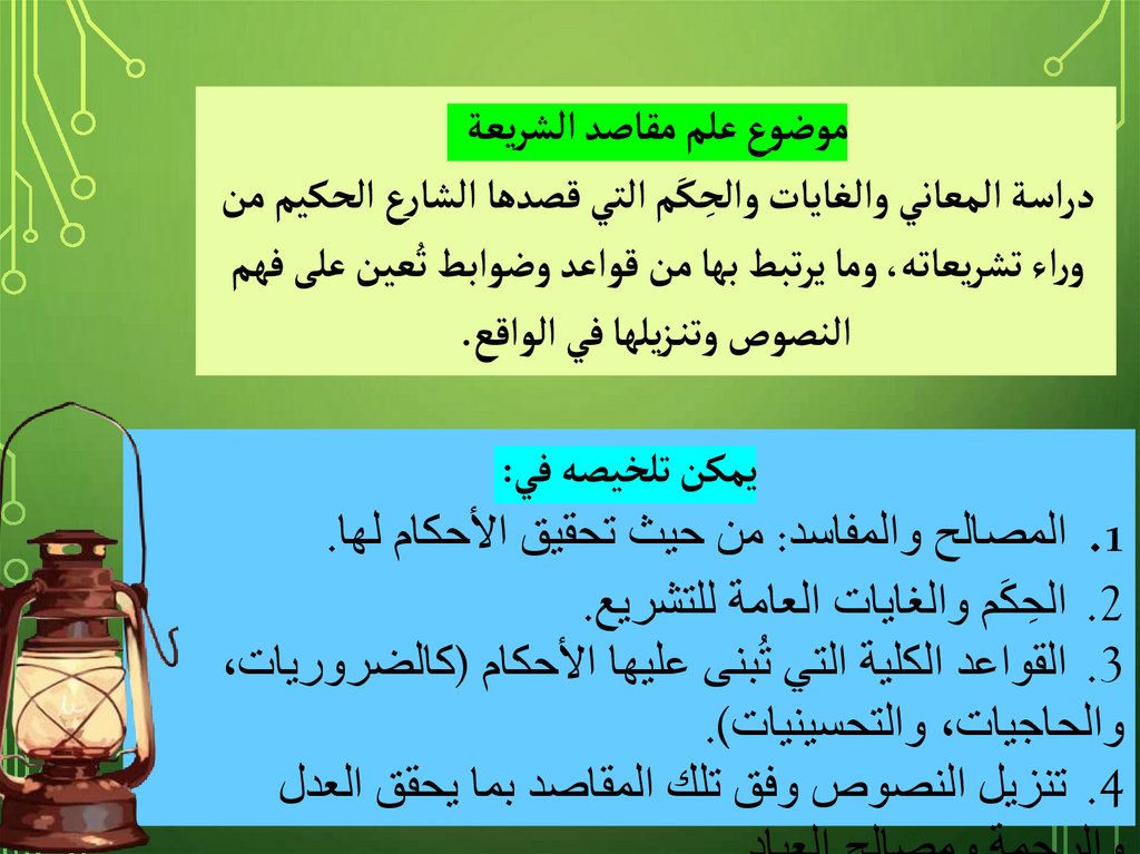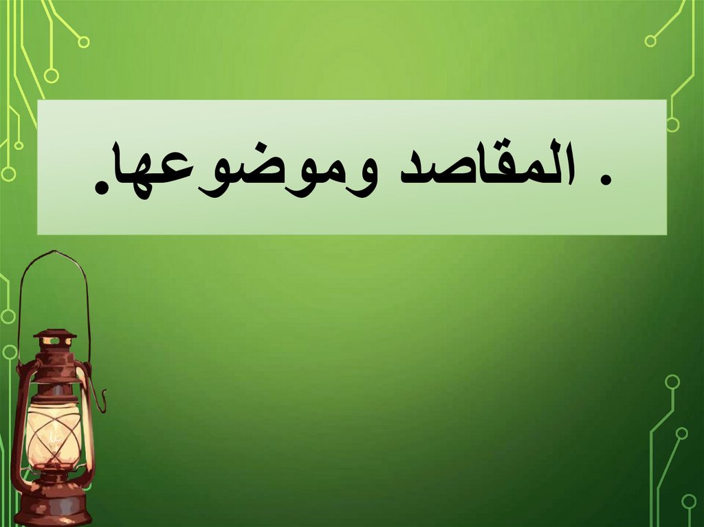 • المقاصد وموضوعها :تعريف المقاصد الشرعية ومجالها و .