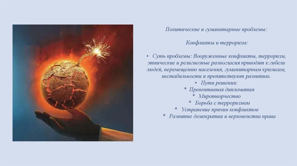 • Суть проблемы: Вооруженные конфликты, терроризм,