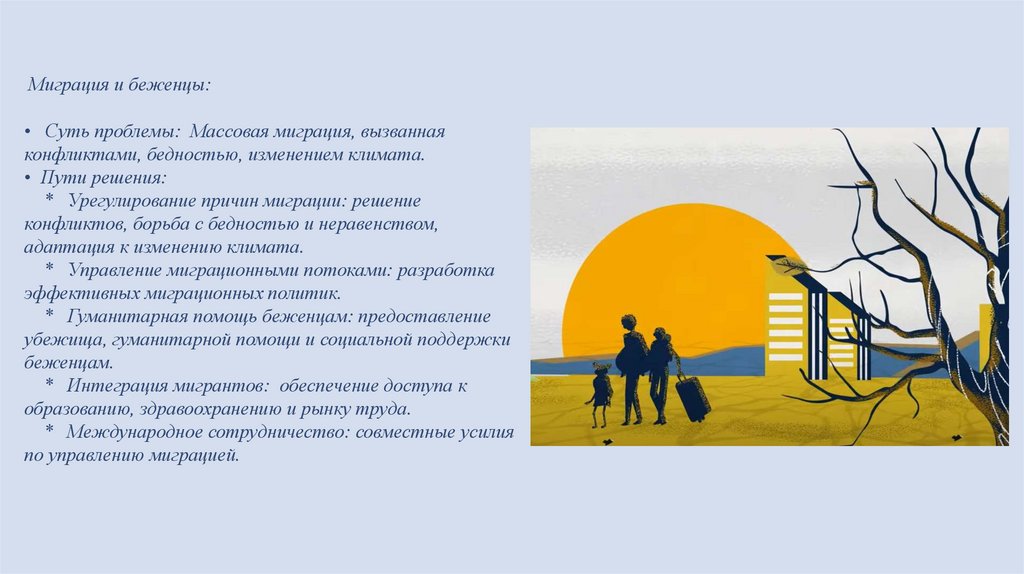 Миграция и беженцы:• Суть проблемы: Массовая миграция, вызванная