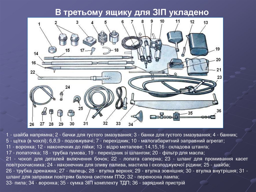 ЗІП ТАНКА ТА ЗАСОБИ ТЕХНІЧНОГО ОБСЛУГОВУВАННЯ