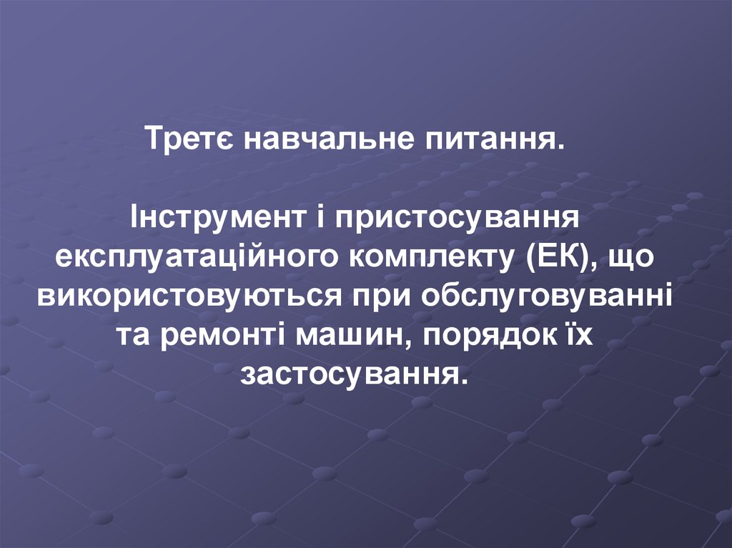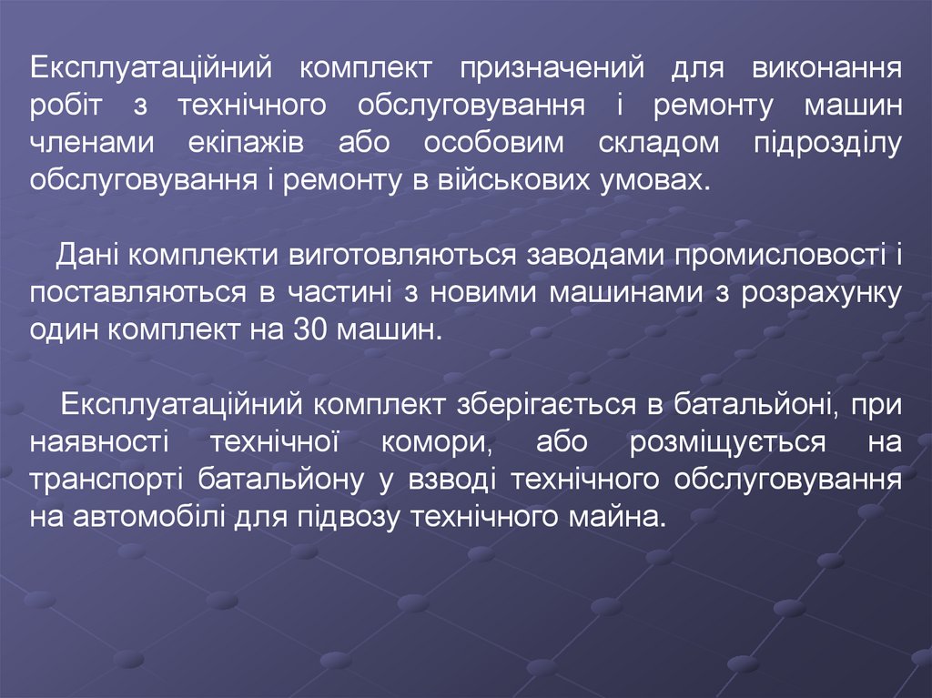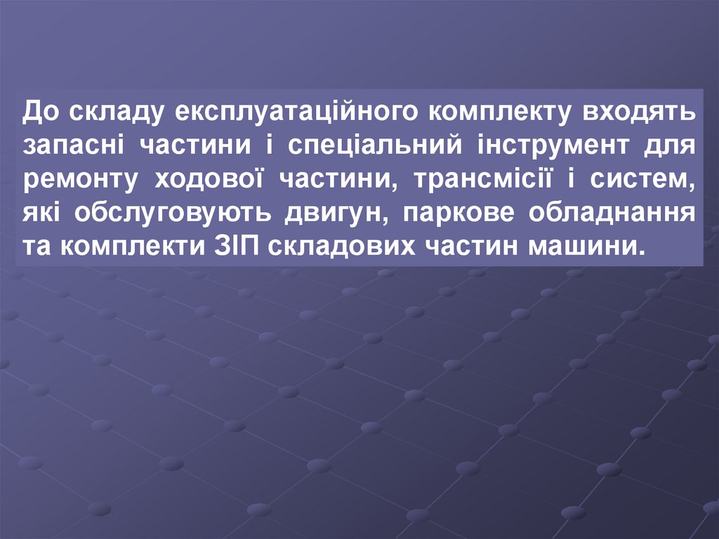 Експлуатаційний комплект призначений для виконанняробіт з технічного обслуговування і ремонту машин