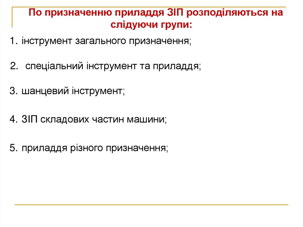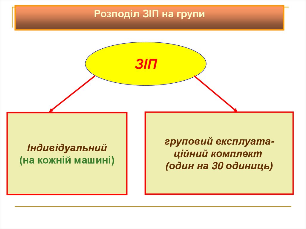 По призначенню приладдя ЗІП розподіляються наслідуючи групи: