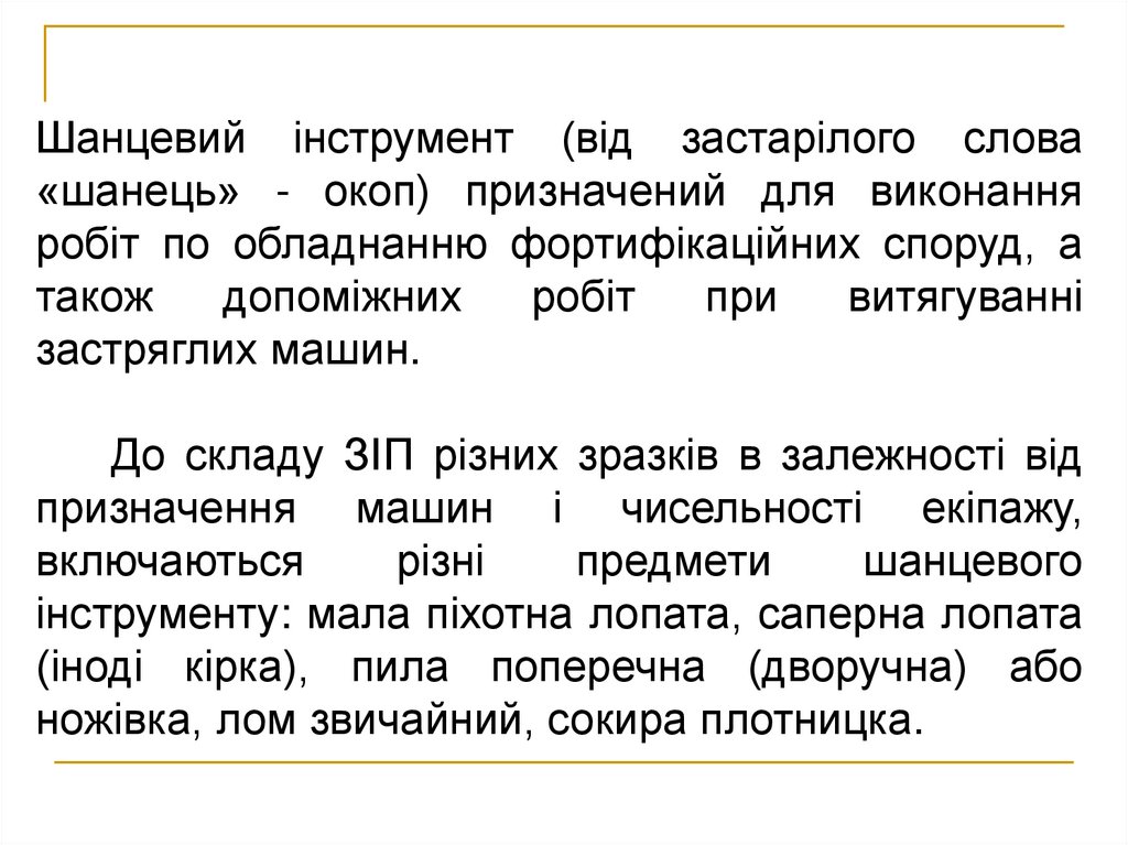 Шанцевий інструмент (від застарілого слова«шанець» - окоп) призначений для виконання