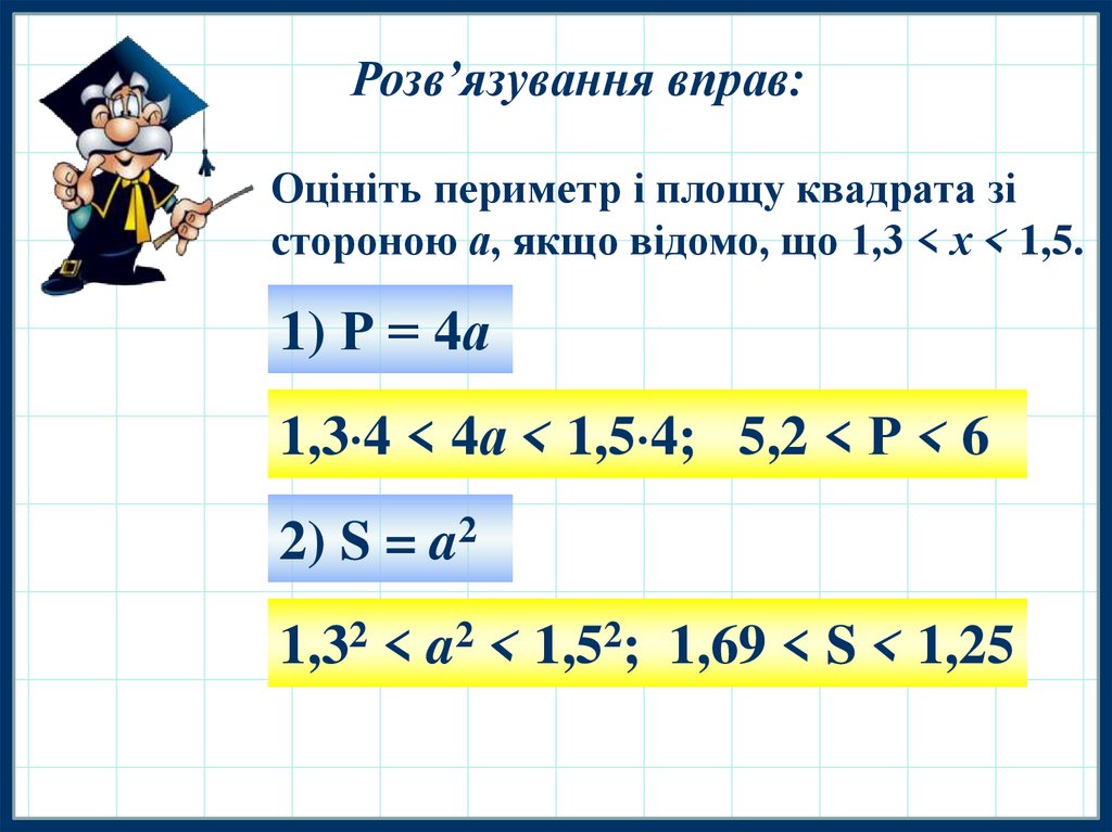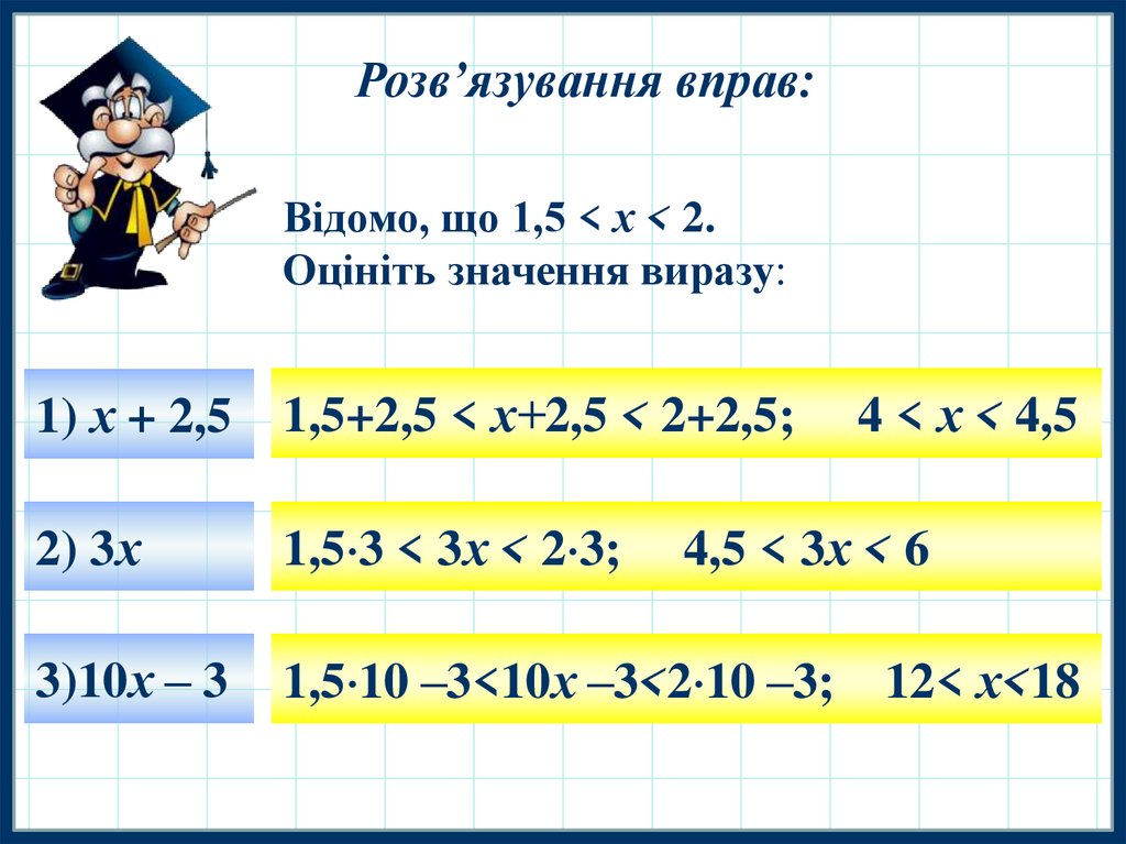 Розв’язування вправ:Відомо, що 1,5 < х < 2.