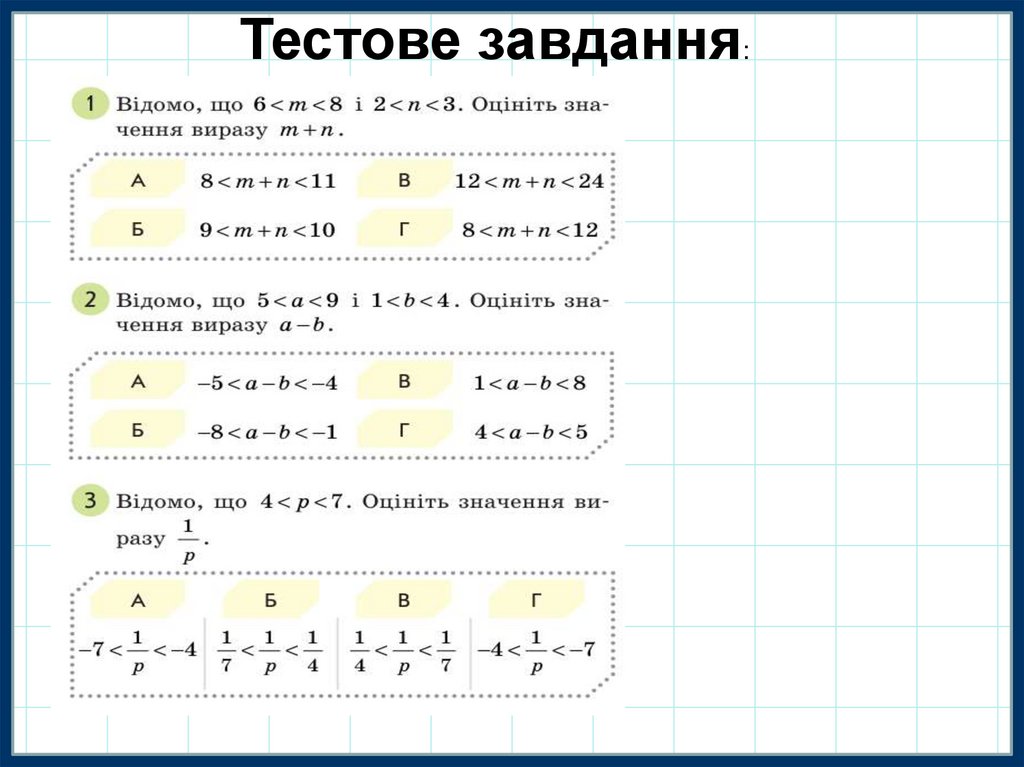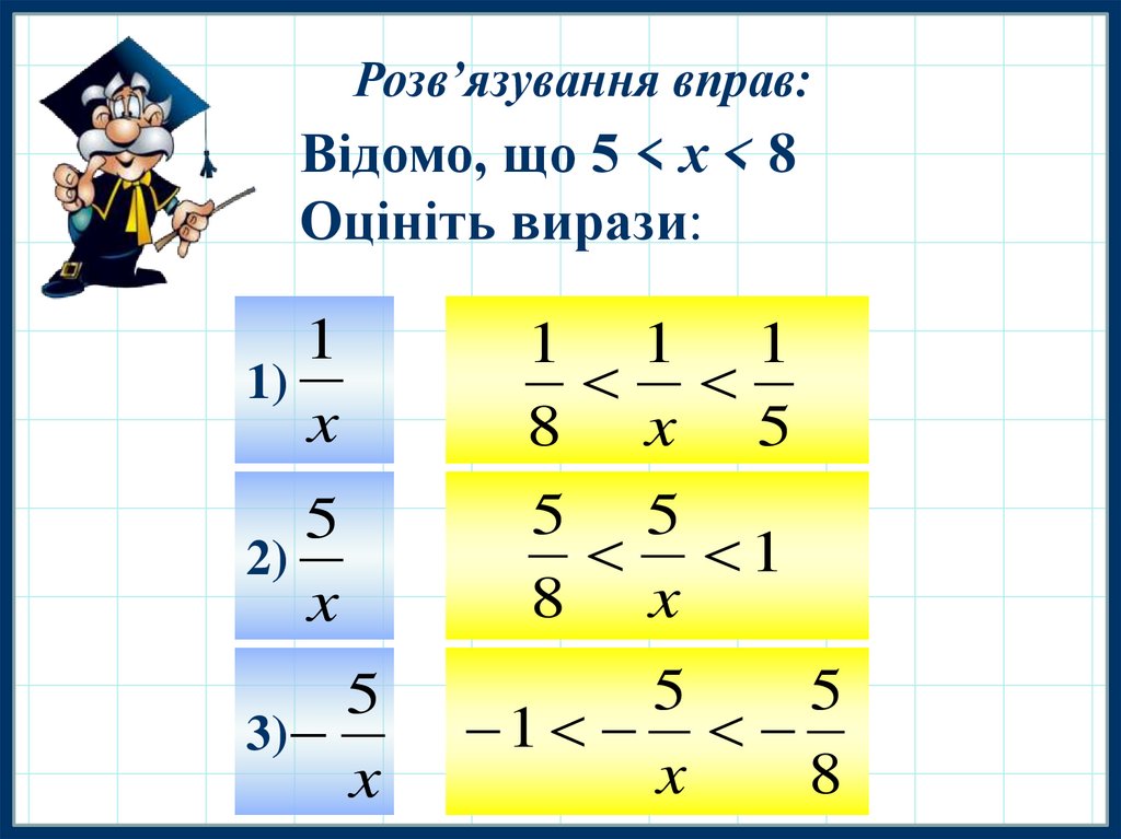 Розв’язування вправ:Відомо, що 5 < х < 8