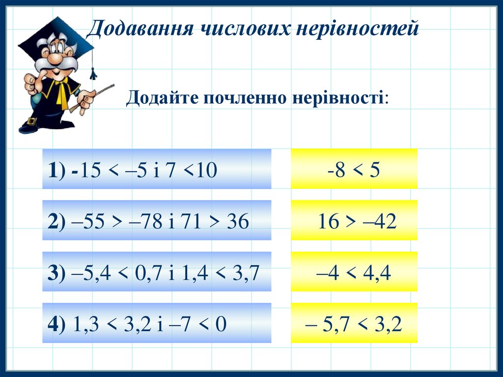 А тепер додаємо нерівності: 18 ( 2) 10 ( 9)