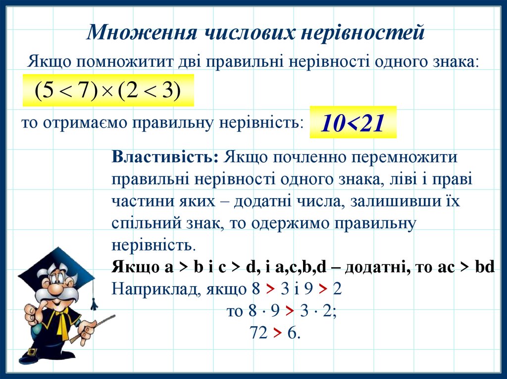 Множення числових нерівностейЯкщо помножитит дві правильні нерівності одного знака: