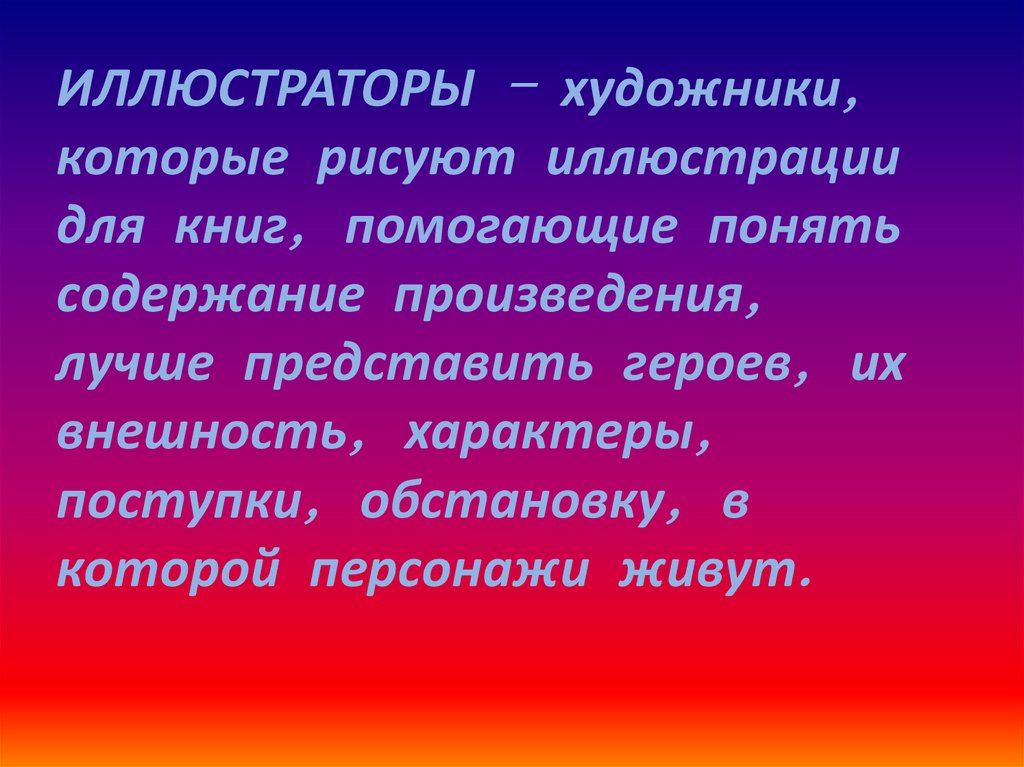 ИЛЛЮСТРАТОРЫ - художники,которые рисуют иллюстрации