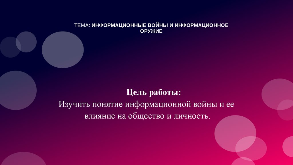 ТЕМА: ИНФОРМАЦИОННЫЕ ВОЙНЫ И ИНФОРМАЦИОННОЕОРУЖИЕ