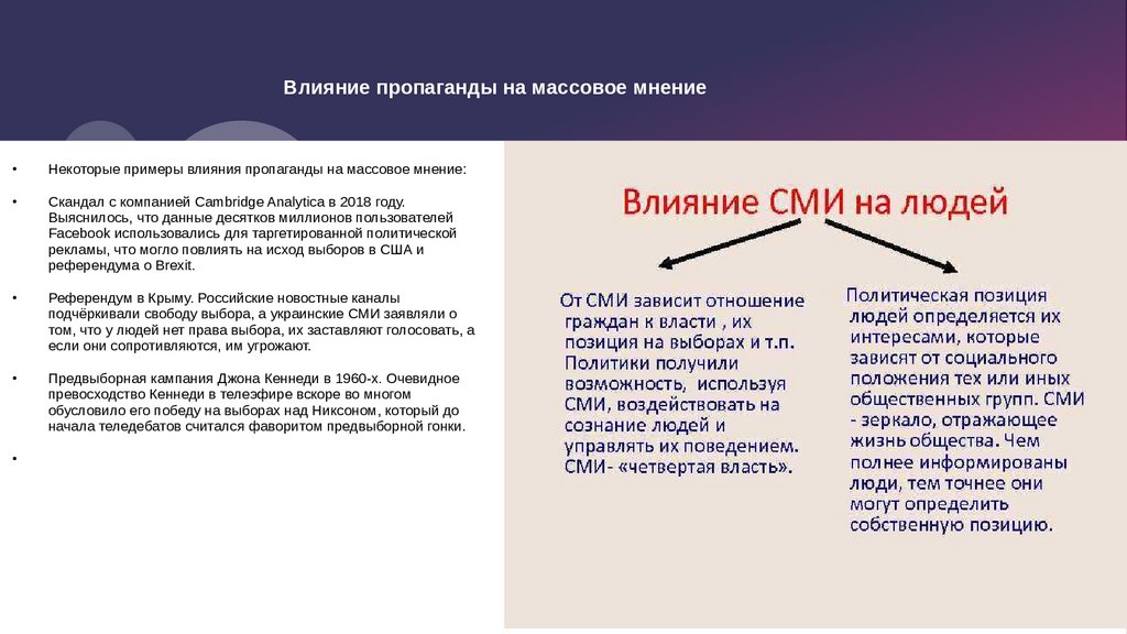 Влияние пропаганды на массовое мнениеНекоторые примеры влияния пропаганды на массовое мнение: