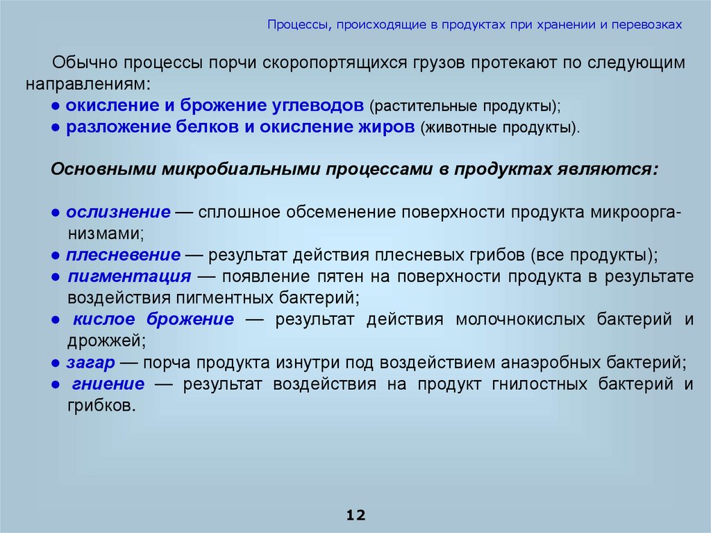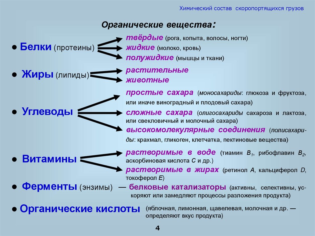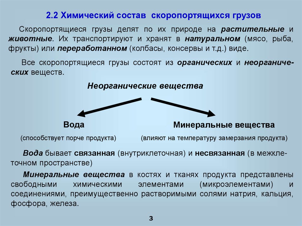 Все скоропортящиеся грузы состоят из органических и неорганических веществ.