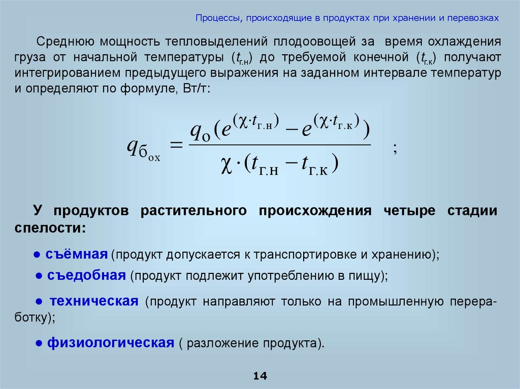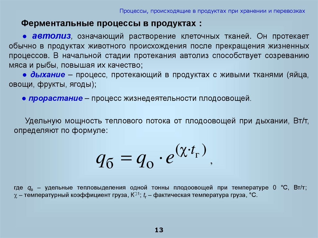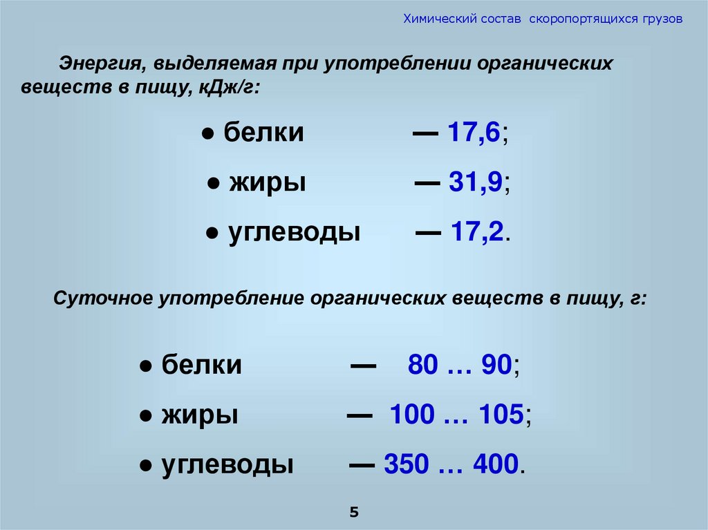 Химический состав скоропортящихся грузовЭнергия, выделяемая при употреблении органических
