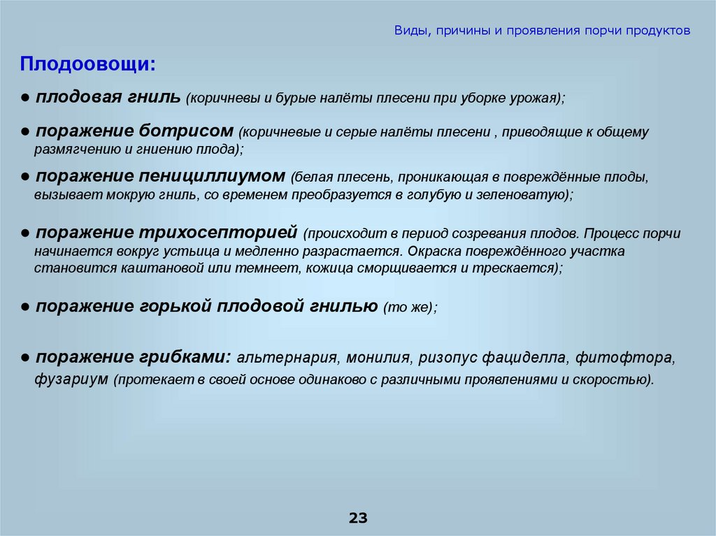 ● гниль: чёрная, зелёная, красная, розовая, смешанная (гнилостное разложение