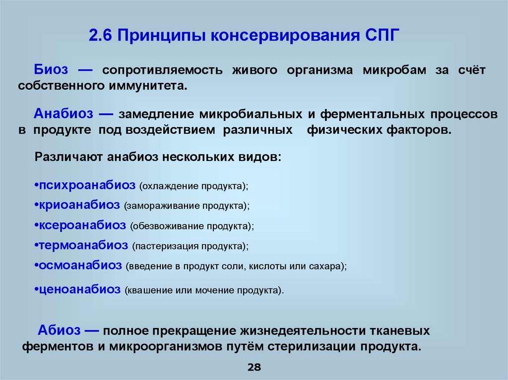 2.6 Принципы консервирования СПГБиоз — сопротивляемость живого организма микробам за счёт