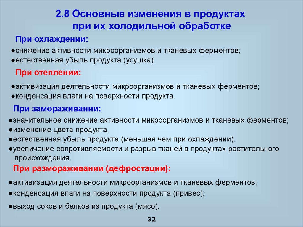 2.8 Основные изменения в продуктахпри их холодильной обработке