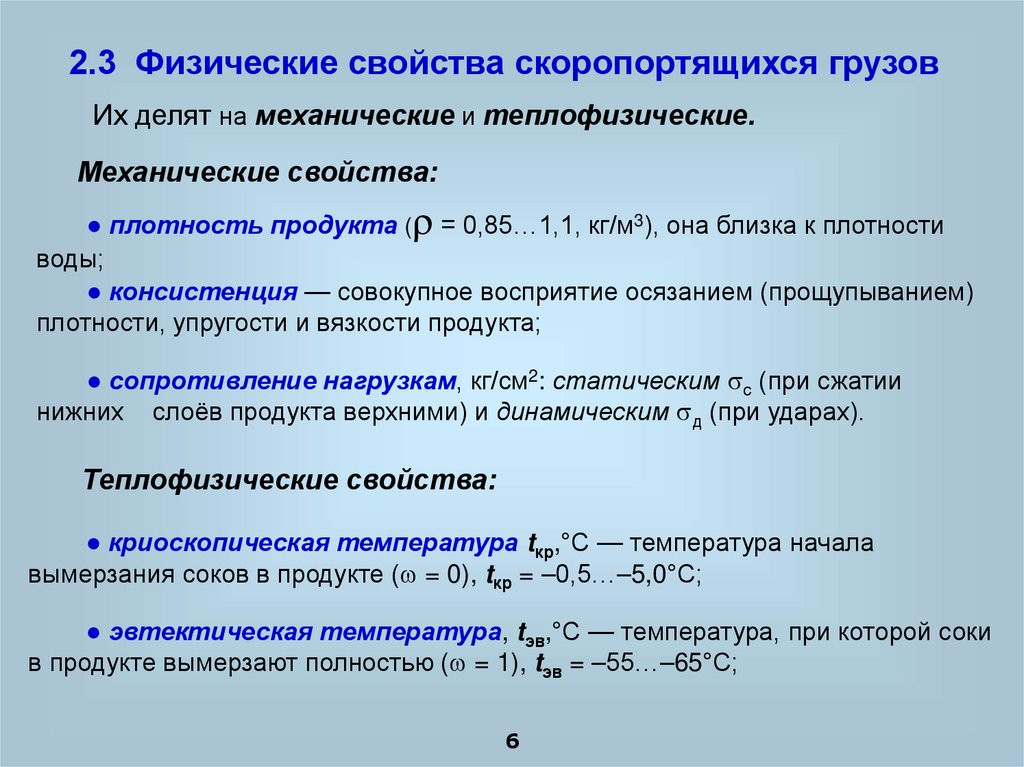 2.3 Физические свойства скоропортящихся грузовИх делят на механические и теплофизические.