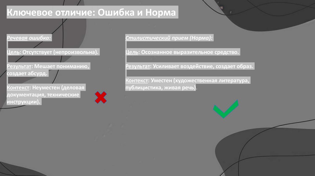 Ключевое отличие: Ошибка и НормаРечевая ошибка: