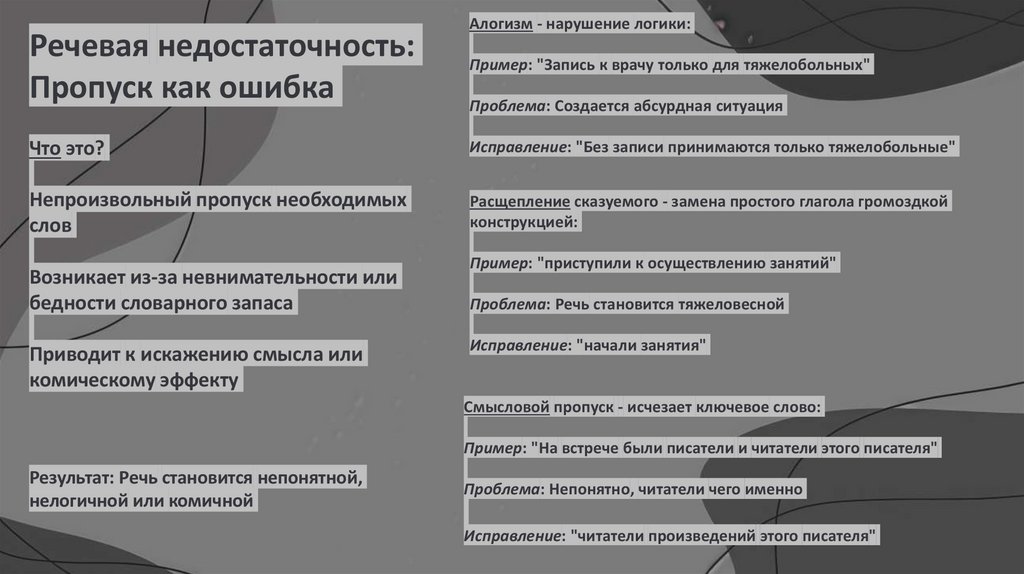 Речевая недостаточность и избыточность: