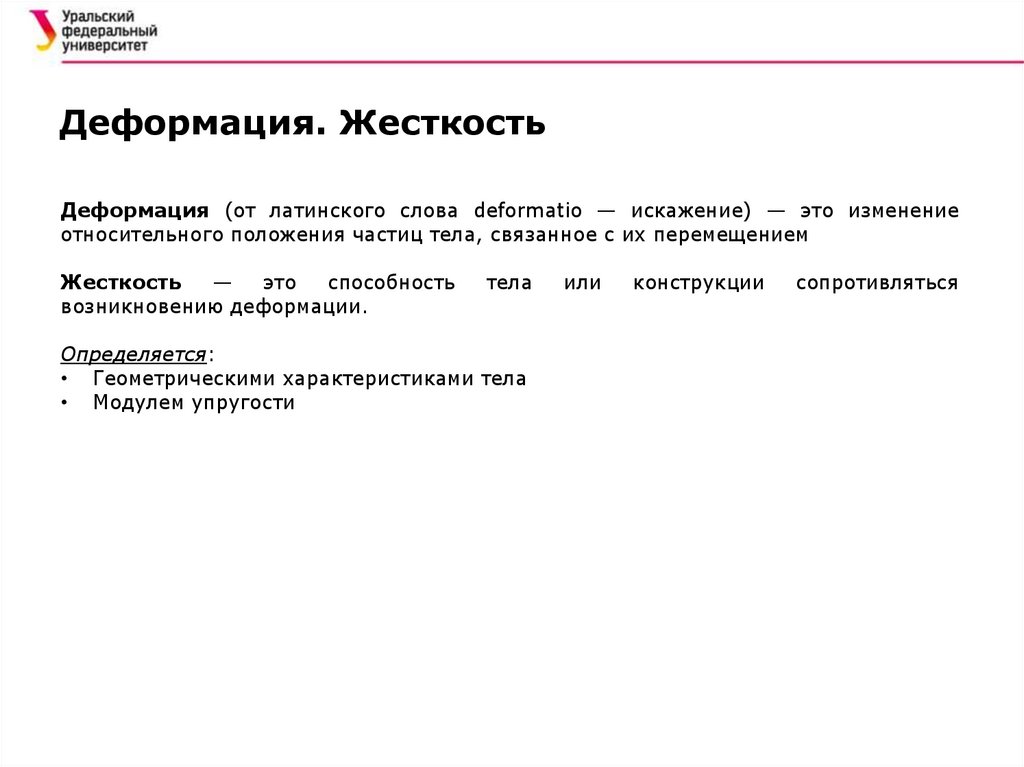 Деформация. ЖесткостьДеформация (от латинского слова deformatio — искажение) — это изменение