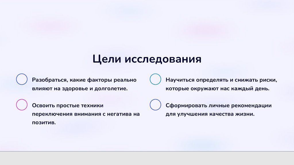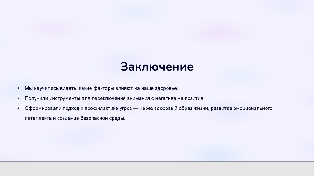 ЗаключениеМы научились видеть, какие факторы влияют на наше здоровье.