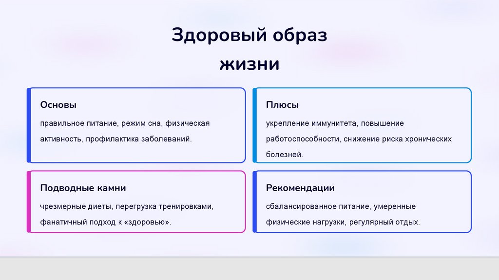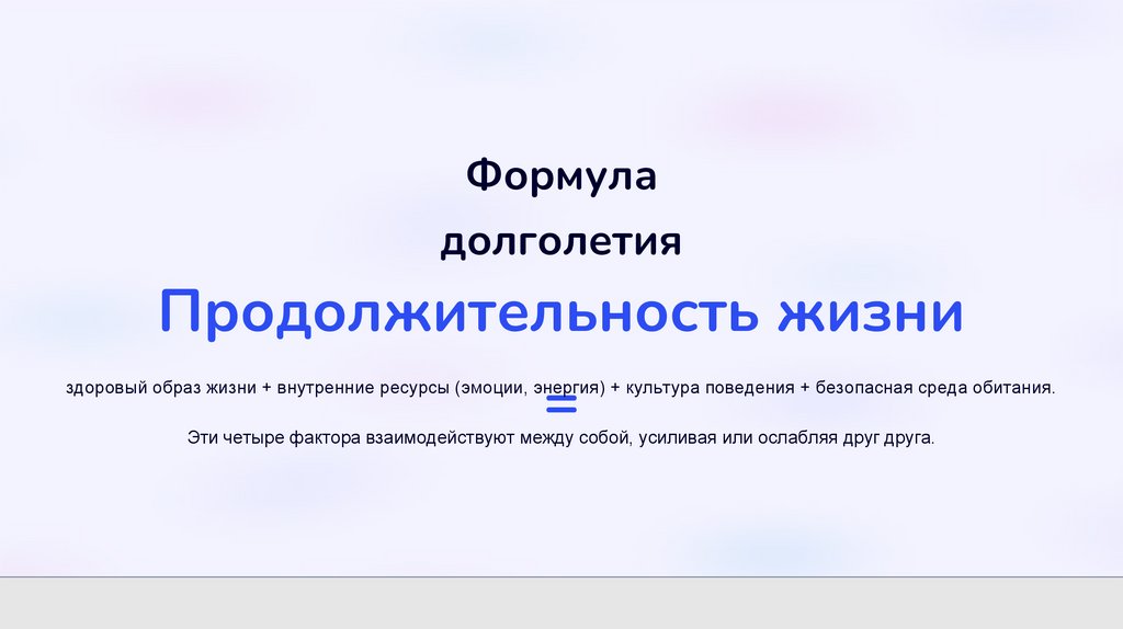 здоровый образ жизни + внутренние ресурсы (эмоции, энергия) + культура поведения + безопасная среда обитания.