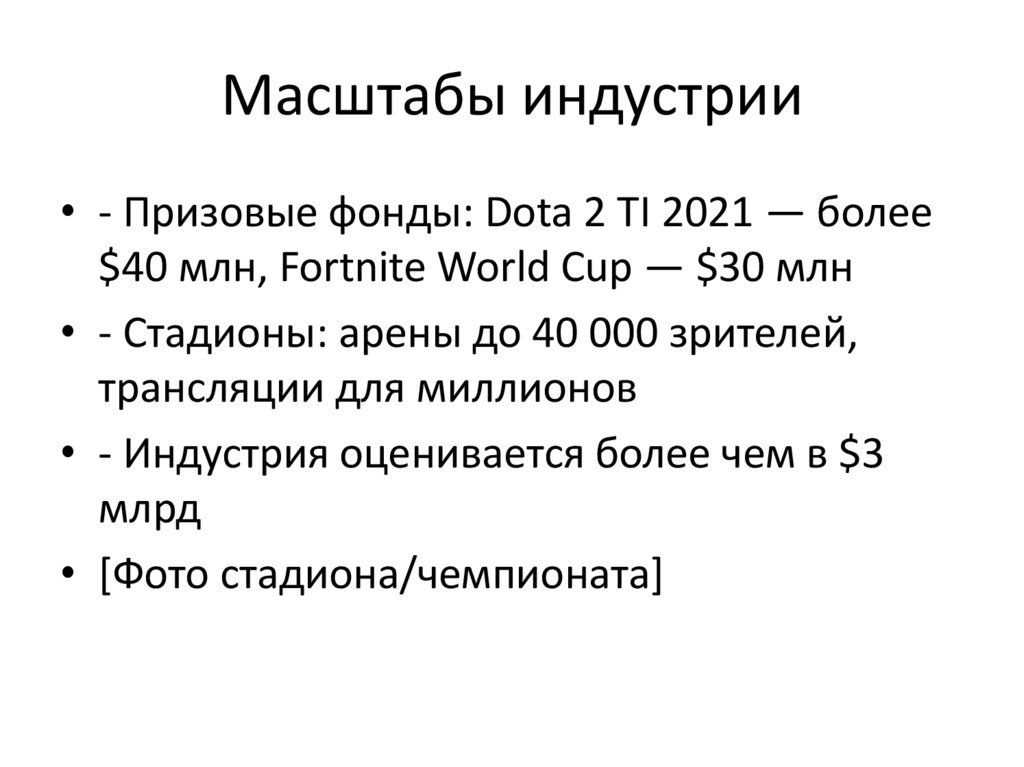 Масштабы индустрии• - Призовые фонды: Dota 2 TI 2021 — более
